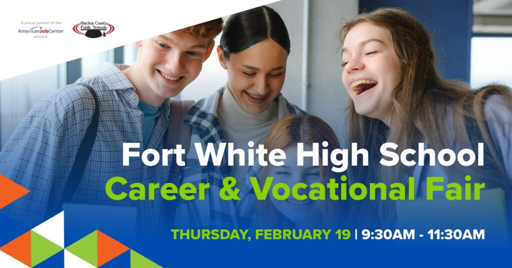 Your future starts here! This career fair is your chance to meet local employers, explore in-demand careers, and learn about options beyond a four-year degree, from skilled trades to tech and more. Be sure to visit the CareerSource North Central Florida booth for free résumé guidance and career coaching. We’re here to help connect you with local employers, now and after graduation.
