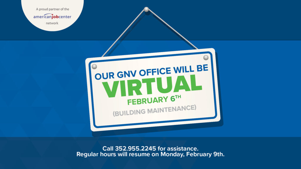 CareerSource North Central Florida is an equal opportunity employer/program. Auxiliary aids and services are available upon request to individuals with disabilities. All voice telephone numbers may be reached by persons using TTY/TDD equipment via the Florida Relay Service at 711. Programs funded by CareerSource NCFL as a grantee of the U.S. Department of Labor. A proud partner of the American Job Center Network. Local Workforce Development Board 26.
