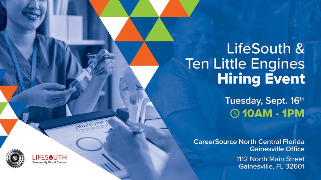 LifeSouth Community Blood Centers saves lives every day by connecting donors to patients in need, while Ten Little Engines powers North Florida’s homes and businesses with expert service and top-tier outdoor equipment.